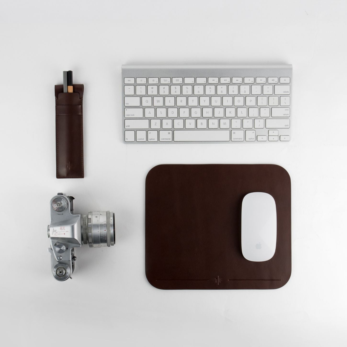 (Only leather mouse pad included. Camera, pen holder and keyboard not included)