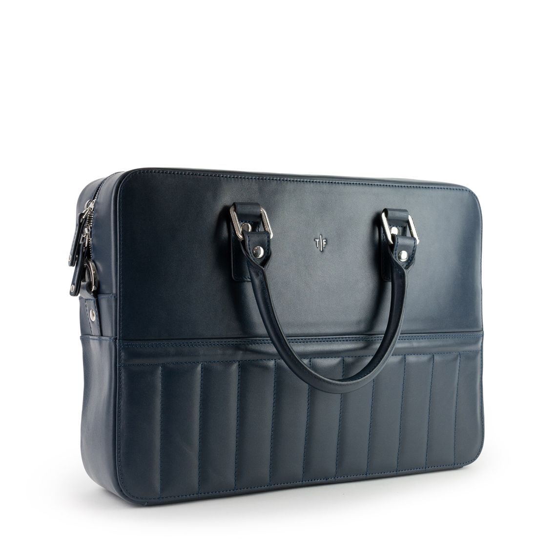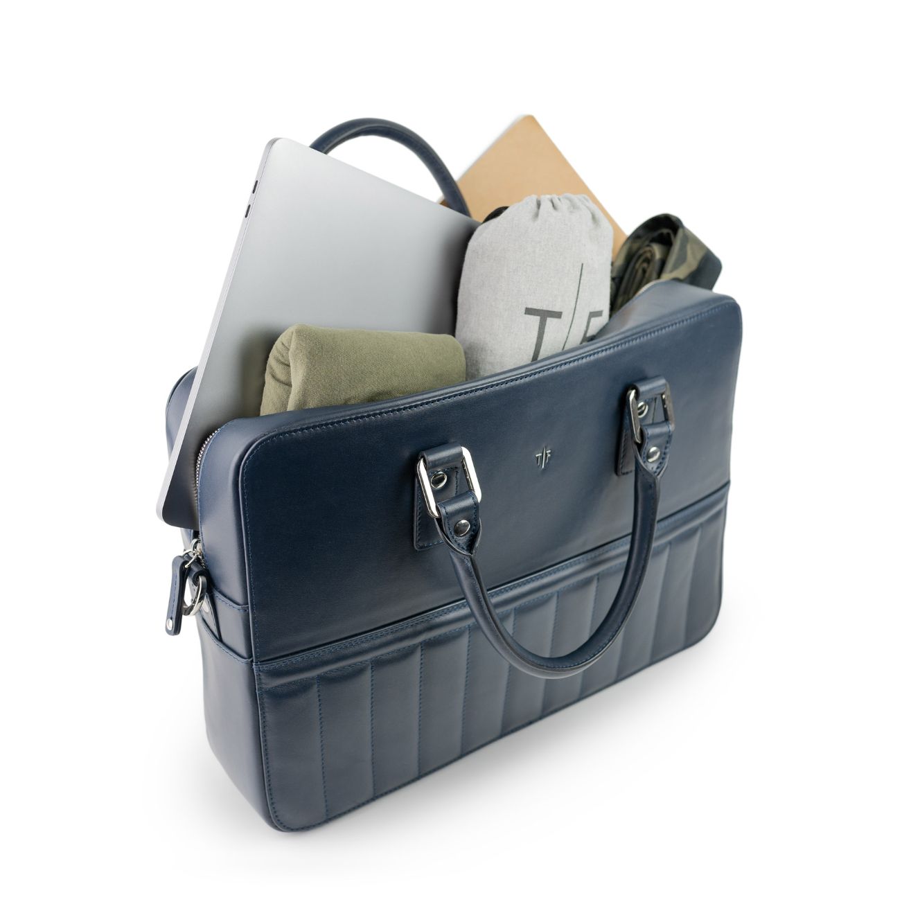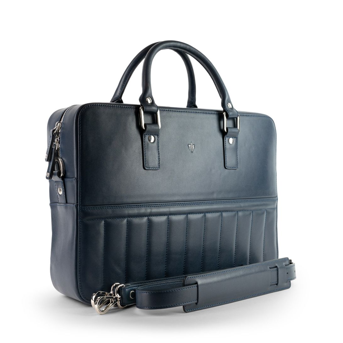 The outside has a sleek multipurpose pocket that is created for sliding any documents, tablets or notepads that require rapid or constant use. The interior is created with two separate wide, padded compartments, one for your laptop and a second for keeping folders organised. Furthermore, there is a third larger area as well as dedicated pen and accessory divisions on the opposite side of your Urban leather bag.