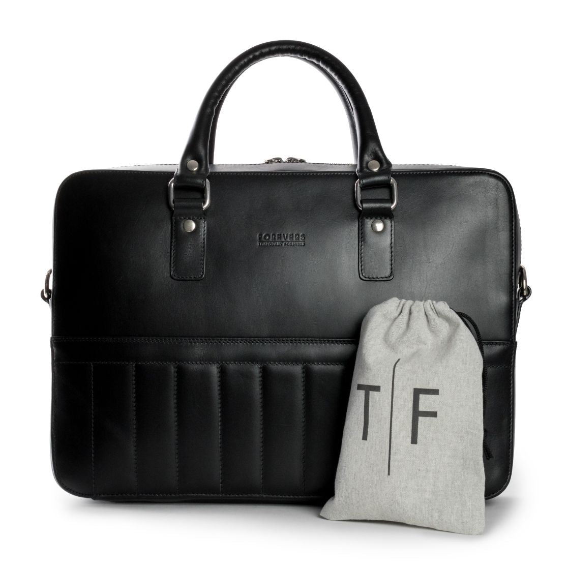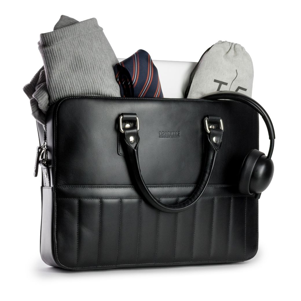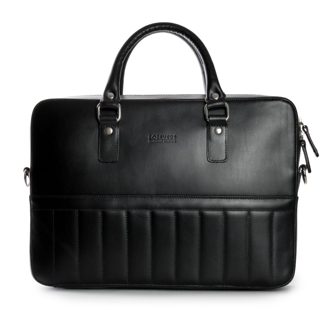 The outside has a sleek multipurpose pocket that is created for sliding any documents, tablets or notepads that require rapid or constant use. The interior is created with two separate wide, padded compartments, one for your laptop and a second for keeping folders organised. Furthermore, there is a third larger area as well as dedicated pen and accessory divisions on the opposite side of your Urban leather bag.